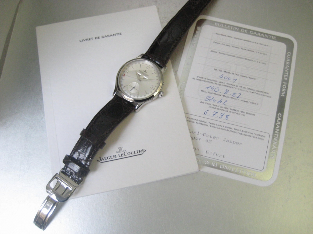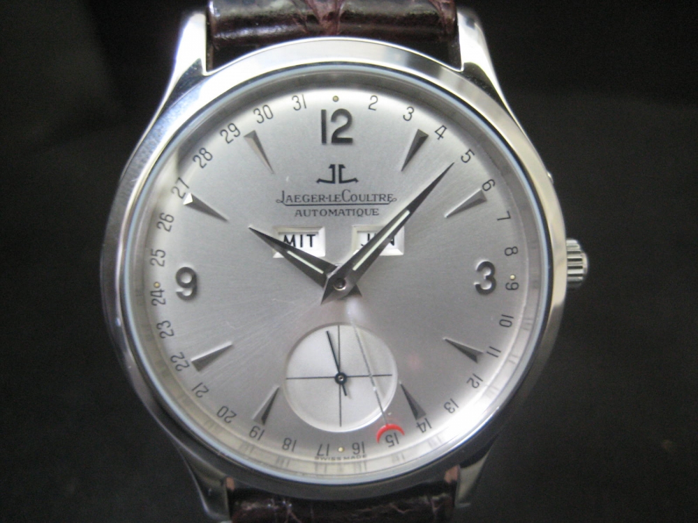 Magnifique et collector Master Controle calendrier, 37mm, automatique, année 1998, boucle déployante, bracelet croco, en état impeccable avec ses papiers originaux!
